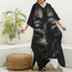 Black Wolf Portrait Print Silk V-Neck Kaftan Dress