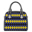 Black Yellow And Blue Argyle Print Shoulder Handbag