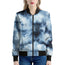 Blue And Black Acid Wash Tie Dye Print Women's Bomber Jacket