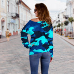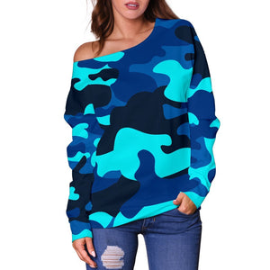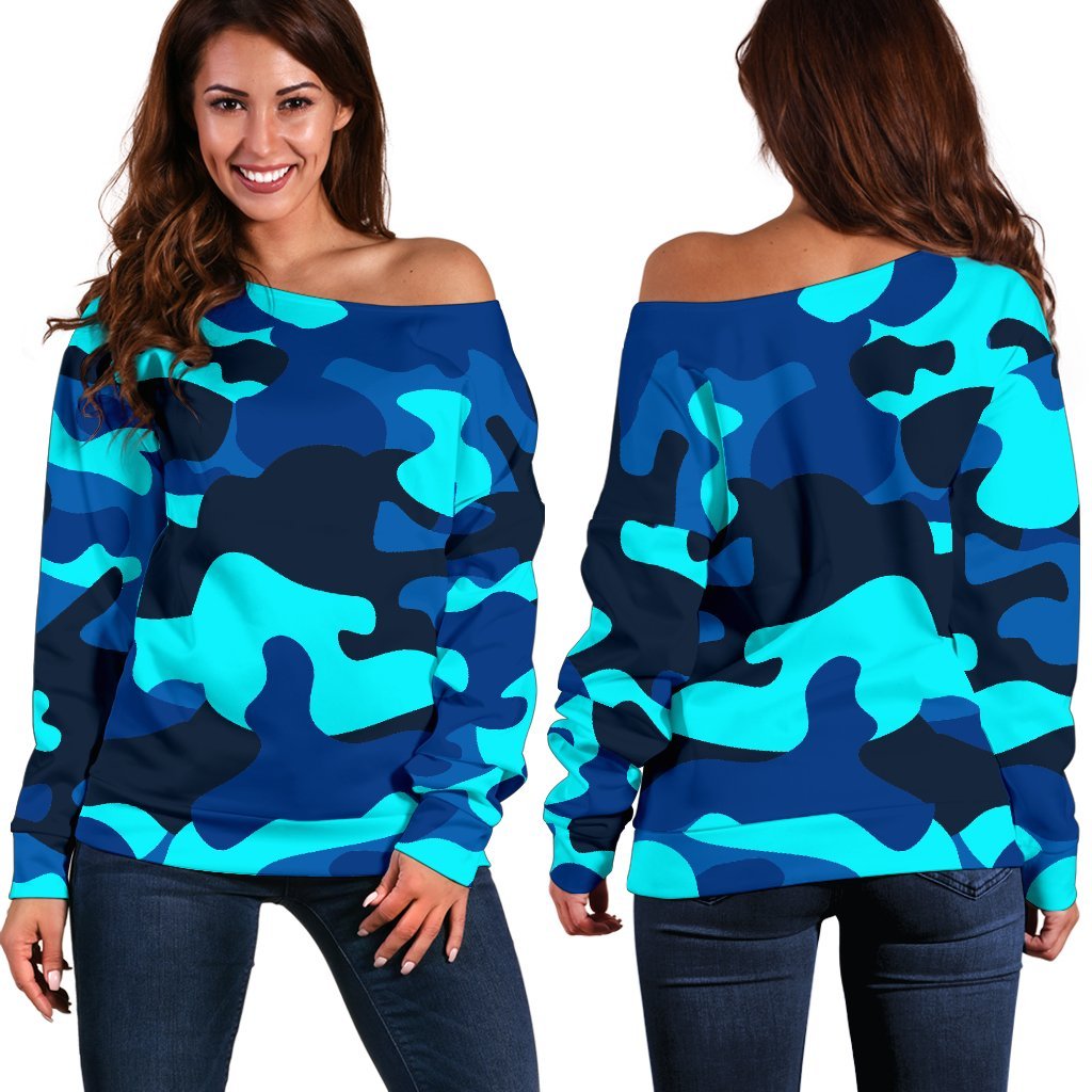 Are you looking for unique sweatshirts? Check our Blue And Black Camouflage Print Off The Shoulder Sweatshirt on GearFrost. Our sweatshirts are handcrafted to the highest quality standards and made-to-order for you!