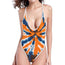 Blue And Orange Spider Tie Dye Print One Piece High Cut Swimsuit