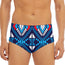 Stay confident at the pool or beach with the Blue And Red Aztec Pattern Print Men's Triangle Swim Briefs. Designed with a blend of 88% polyester and 12% spandex, these swim briefs provide comfort, stretch, and support for everyday swimwear use. The smooth fabric and regular fit make them practical for both swimming and lounging.