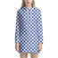 Blue And White Checkered Pattern Print Pullover Hoodie Dress