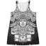Blue And White Mayan Statue Print Women's Racerback Tank Top