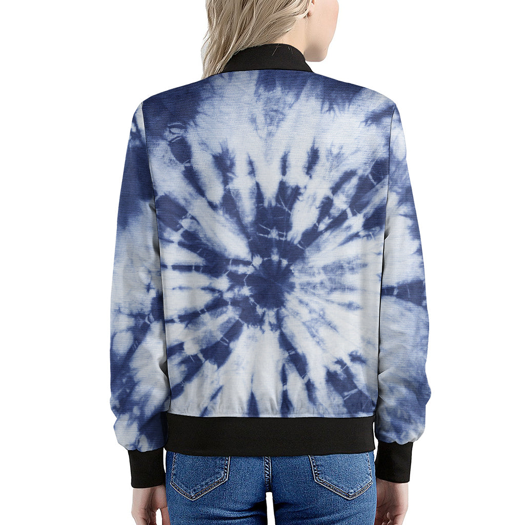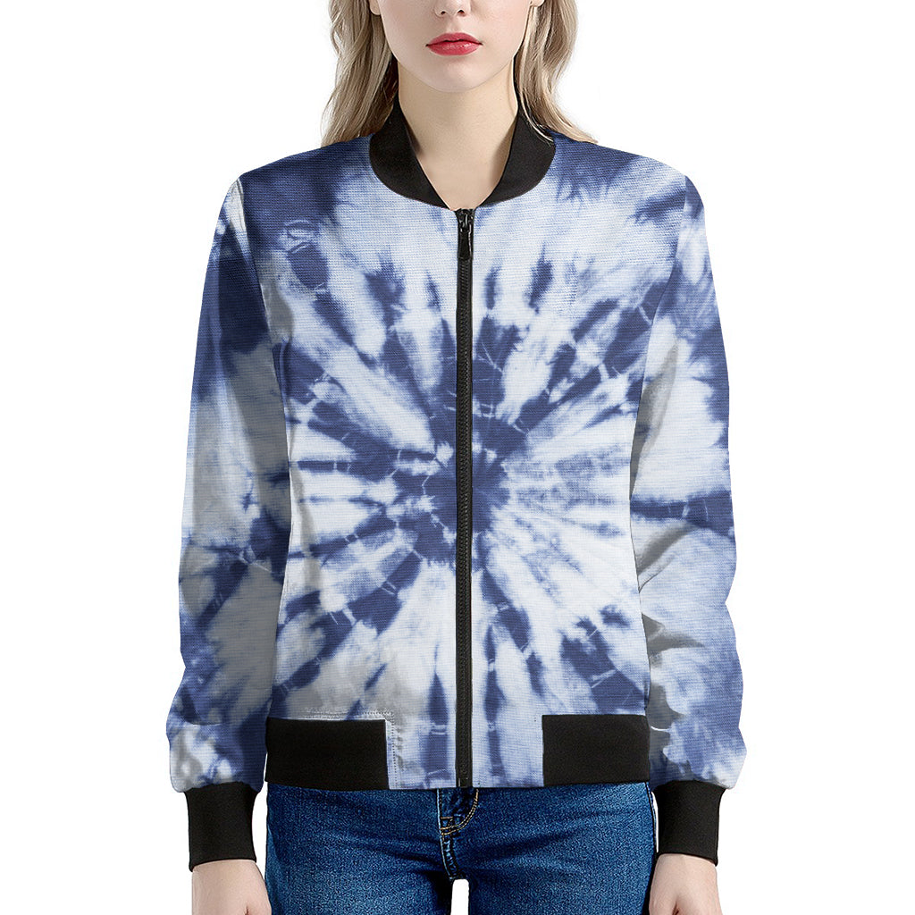 Make a bold statement with the sleek and stylish Blue And White Tie Dye Print Women's Bomber Jacket. This women's bomber jacket combines a classic silhouette with modern design, offering the perfect mix of fashion and functionality. Whether you're layering it for a chilly day or adding a finishing touch to your outfit, this jacket is designed to keep you comfortable while elevating your style.