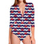 Blue And White Wave Crab Pattern Print Long Sleeve Swimsuit