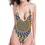 Blue And Yellow Motion Illusion Print One Piece High Cut Swimsuit