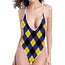 Blue Black And Yellow Argyle Print One Piece High Cut Swimsuit