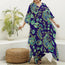 Blue Bohemian Paisley Pattern Print Silk V-Neck Kaftan Dress