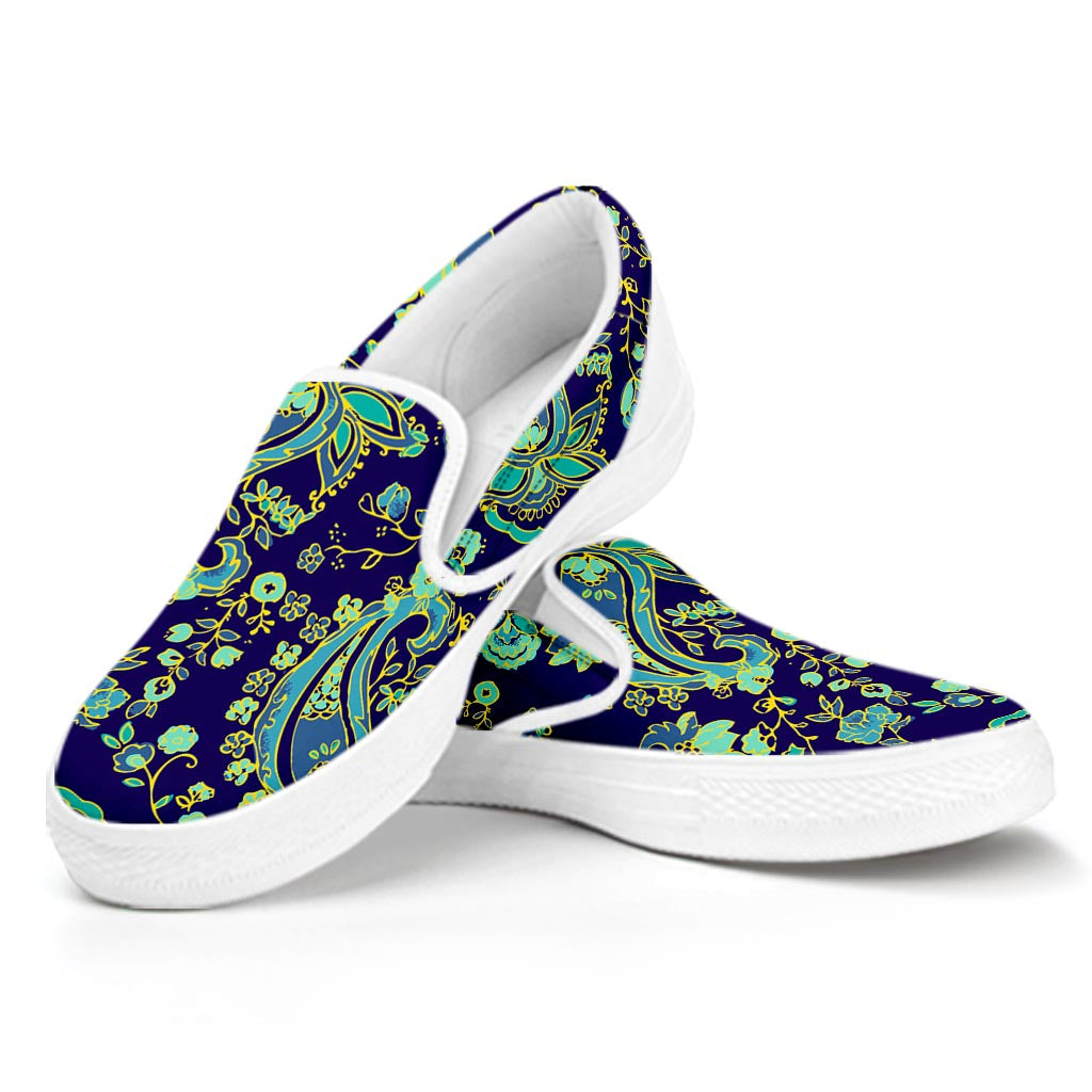 Step into effortless style and unmatched comfort with the versatile Blue Bohemian Paisley Pattern Print White Slip On Sneakers. Designed for those who value convenience and unique design, these slip-on sneakers are the perfect addition to your footwear collection. Whether you're heading out for a casual outing, running errands, or simply enjoying a laid-back day, these sneakers are built to complement your lifestyle with ease and flair.