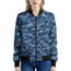 Blue Camouflage Knitted Pattern Print Women's Bomber Jacket