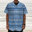 Blue Native American Aztec Pattern Print Textured Short Sleeve Shirt