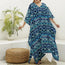 Blue Native Aztec Tribal Pattern Print Silk V-Neck Kaftan Dress