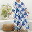 Blue Palm Tree Pattern Print Silk V-Neck Kaftan Dress