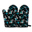 Blue Peony And Grey Rose Floral Print Oven Mitts
