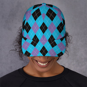 Top off your look with the stylish and functional Blue Purple And Black Argyle Print Baseball Cap. Designed for comfort and durability, this baseball cap is the perfect accessory for casual outings, outdoor activities, or simply elevating your everyday style. Its sleek design and practical features make it a wardrobe essential for anyone who values both form and function.