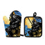 The Blue Sky And Golden Sun Samurai Print Oven Mitt And Pot Holder Set is a reliable kitchen essential designed to keep your hands and surfaces safe during everyday cooking. Made from durable polyester with an insulation cotton lining, this set offers comfort and practical heat resistance for common kitchen tasks.