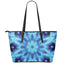 Blue Snowflake Kaleidoscope Print Leather Tote Bag
