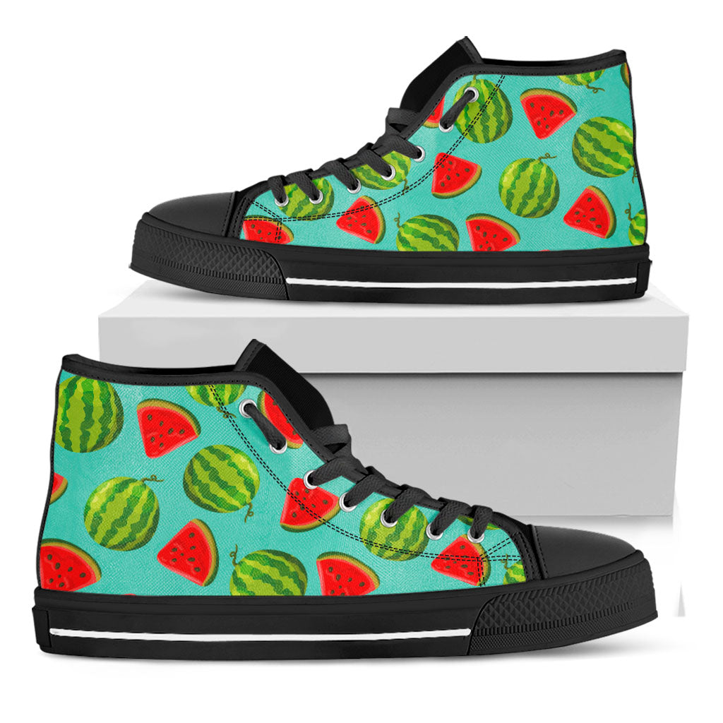 Are you looking for unique sneakers? Check our Blue Summer Watermelon Pattern Print Black High Top Sneakers on GearFrost. Our sneakers are handcrafted to the highest quality standards and made-to-order for you!