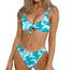 Blue Surfing Wave Pattern Print Front Bow Tie Bikini