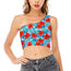 Blue Tropical Hibiscus Pattern Print One Shoulder Crop Top