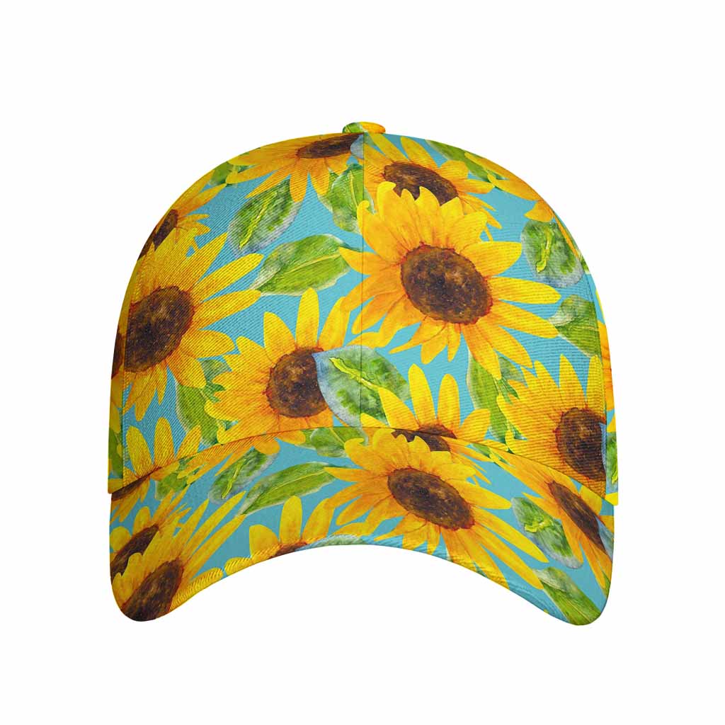 Top off your look with the stylish and functional Blue Watercolor Sunflower Pattern Print Baseball Cap. Designed for comfort and durability, this baseball cap is the perfect accessory for casual outings, outdoor activities, or simply elevating your everyday style. Its sleek design and practical features make it a wardrobe essential for anyone who values both form and function.
