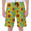 Blue Watercolor Sunflower Pattern Print Men's Beach Shorts