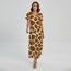 Brown Giraffe Pattern Print Short Sleeve Maxi Dress