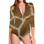 Are you looking for unique swimsuits? Check our Brown Giraffe Print Long Sleeve Swimsuit on GearFrost. Our swimsuits are handcrafted to the highest quality standards and made-to-order for you!