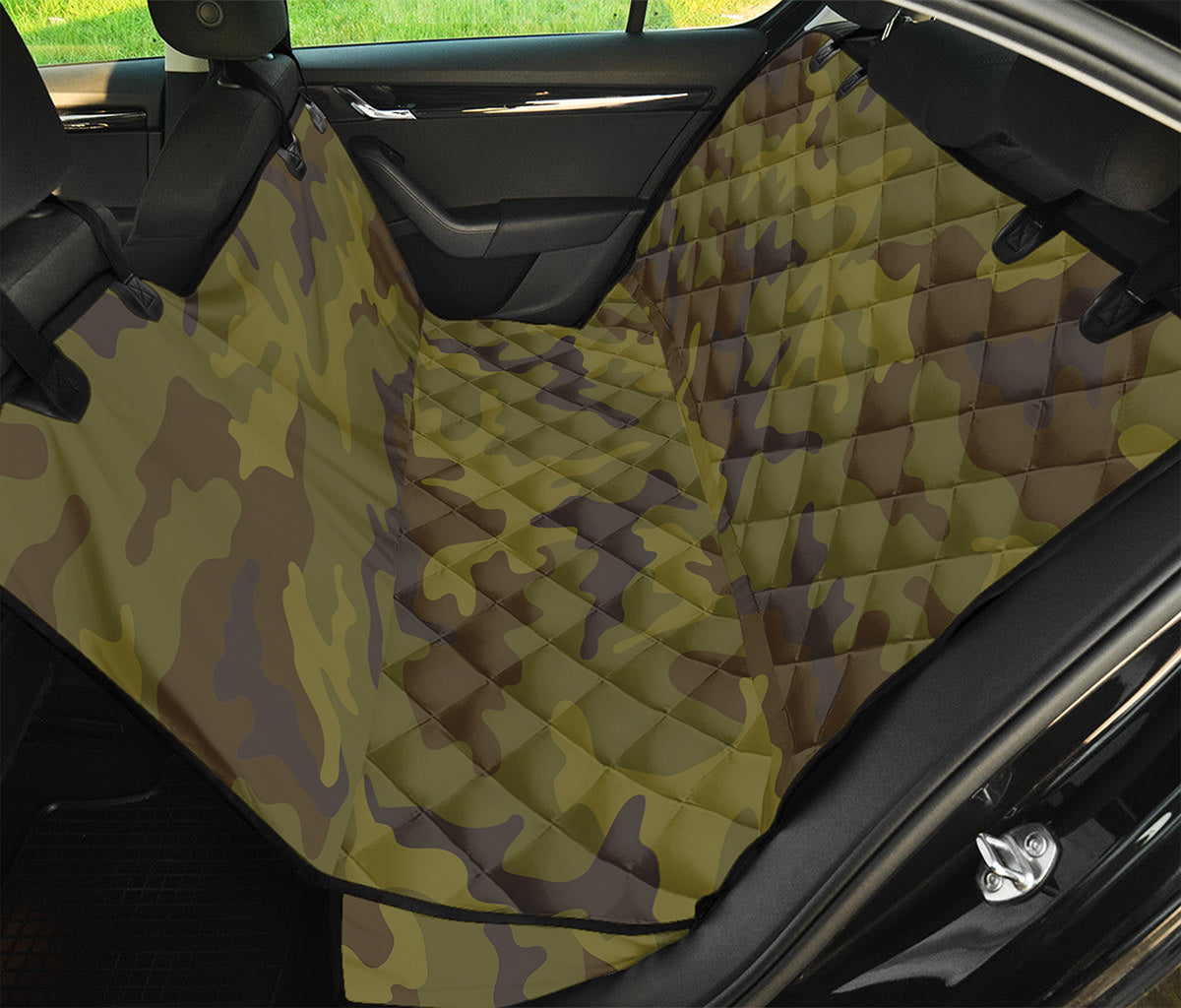 Are you looking for unique pet car seat covers? Check our Brown Green Camouflage Print Pet Car Back Seat Cover on GearFrost. Our pet car seat covers are handcrafted to the highest quality standards and made-to-order for you!