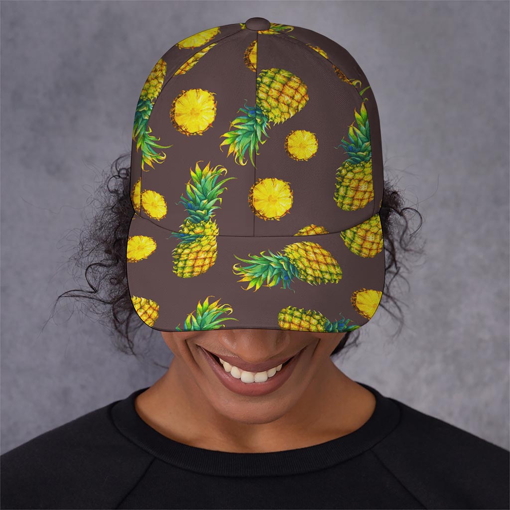 Top off your look with the stylish and functional Brown Pineapple Pattern Print Baseball Cap. Designed for comfort and durability, this baseball cap is the perfect accessory for casual outings, outdoor activities, or simply elevating your everyday style. Its sleek design and practical features make it a wardrobe essential for anyone who values both form and function.