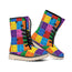 Made with water-resistant micro-suede material, these boots are not only stylish but also practical for winter conditions. The vibrant print adds a unique and personal touch, making them a standout choice for those who love bold and distinctive footwear. Paired with a premium synthetic wool lining, these boots ensure warmth and coziness, wrapping your feet in comfort even on the chilliest days.