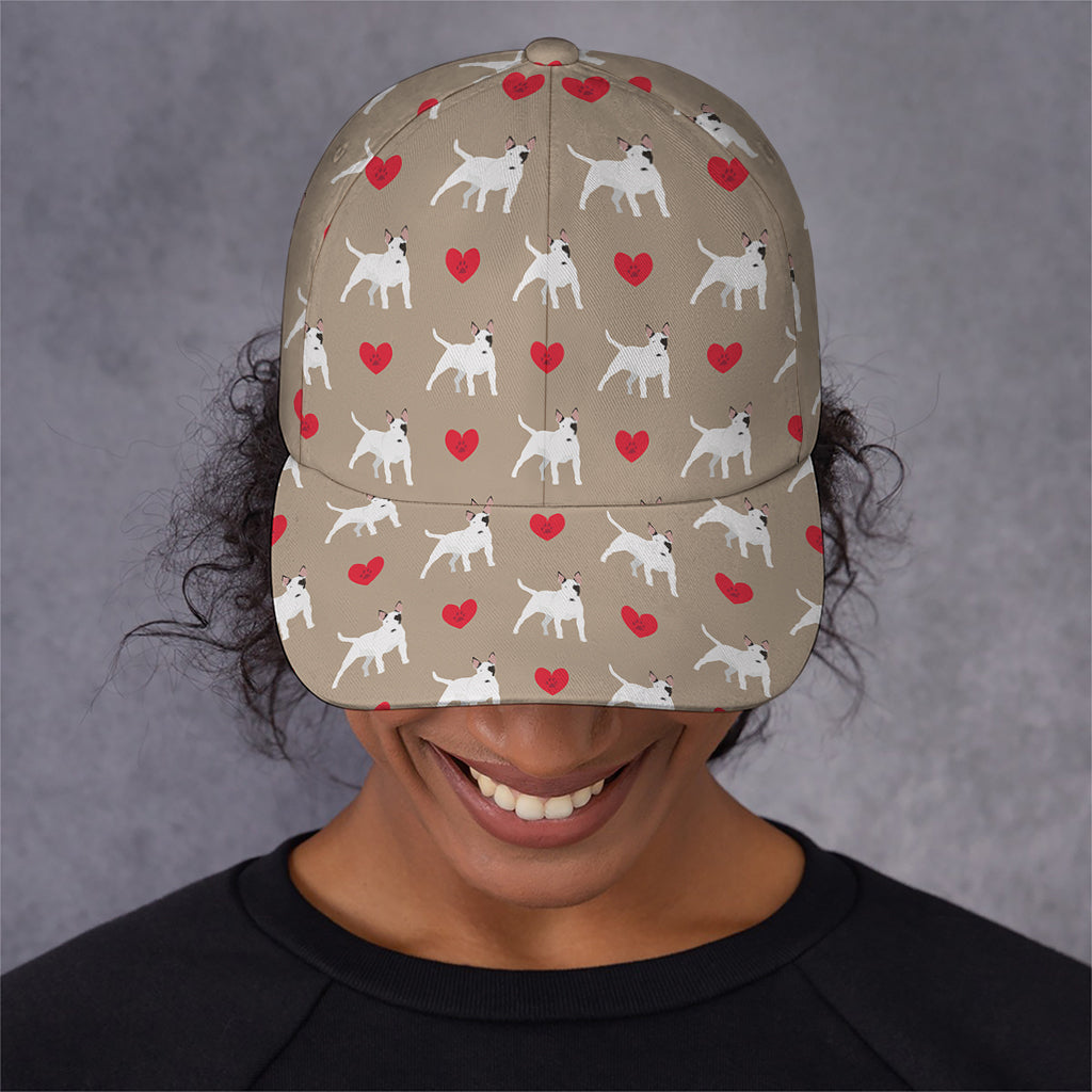 Top off your look with the stylish and functional Bull Terrier Heart Pattern Print Baseball Cap. Designed for comfort and durability, this baseball cap is the perfect accessory for casual outings, outdoor activities, or simply elevating your everyday style. Its sleek design and practical features make it a wardrobe essential for anyone who values both form and function.