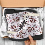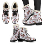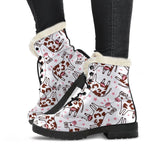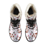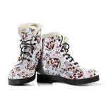 Sugar Skull Pattern Print Faux Fur Leather Boots
