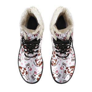 Combine cozy warmth with standout style in the versatile Cartoon Happy Dairy Cow Pattern Print Faux Fur Leather Boots. Designed to keep you comfortable without compromising on fashion, these faux fur leather boots are a must-have addition to your footwear collection. Whether you’re braving chilly weather or adding an edgy touch to your outfit, these boots offer the perfect mix of practicality and personality.