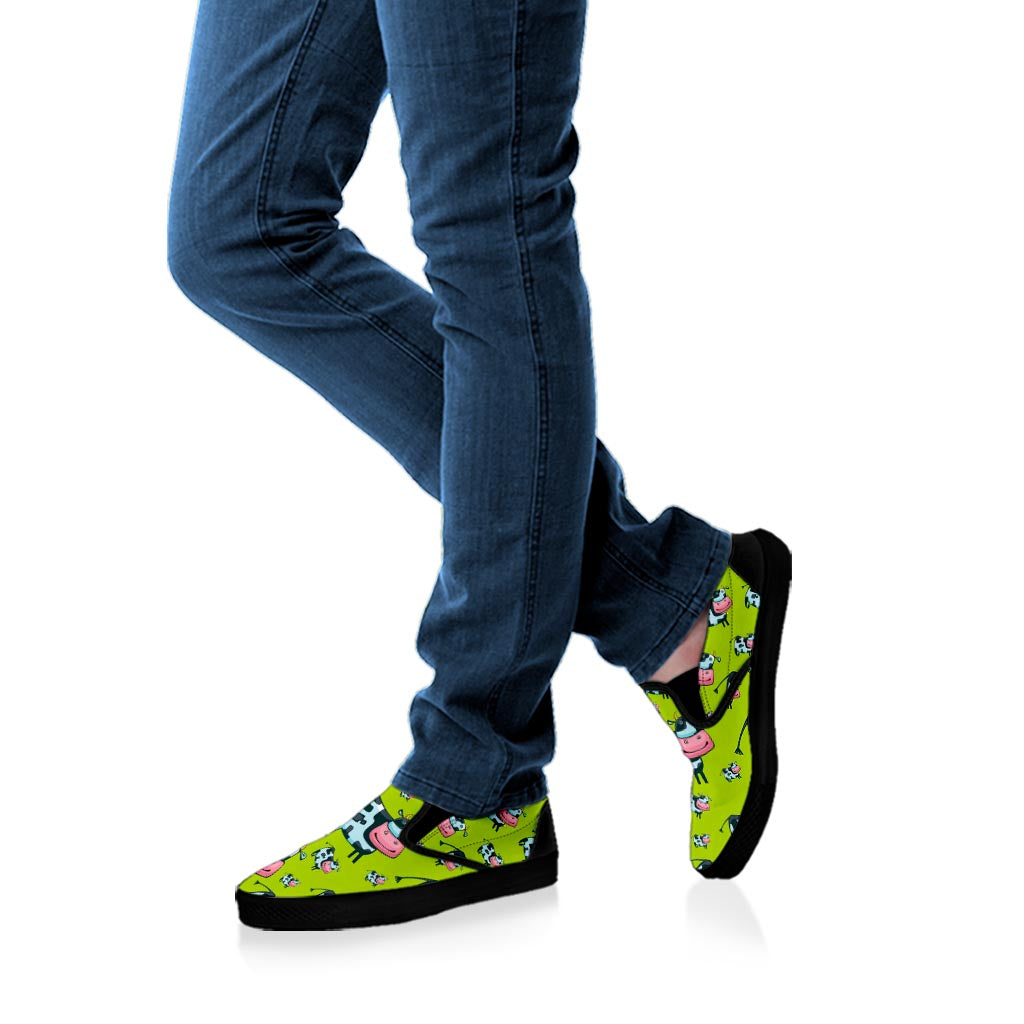 Are you looking for unique sneakers? Check our Cartoon Smiley Cow Pattern Print Black Slip On Sneakers on GearFrost. Our sneakers are handcrafted to the highest quality standards and made-to-order for you!