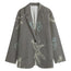 The button closure and side pockets add both style and practicality, providing secure storage for small essentials like keys or a phone. Whether you’re in a professional setting or enjoying a night out, these features make the blazer as functional as it is fashionable. The stitching, available in black or white, is thoughtfully matched to the design, ensuring a polished and cohesive look.