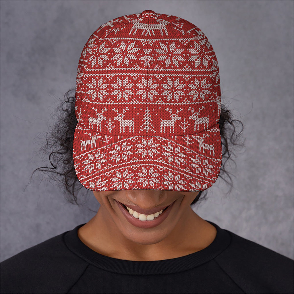 Top off your look with the stylish and functional Christmas Deer Knitted Pattern Print Baseball Cap. Designed for comfort and durability, this baseball cap is the perfect accessory for casual outings, outdoor activities, or simply elevating your everyday style. Its sleek design and practical features make it a wardrobe essential for anyone who values both form and function.
