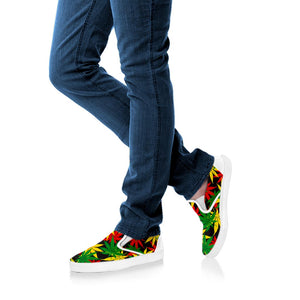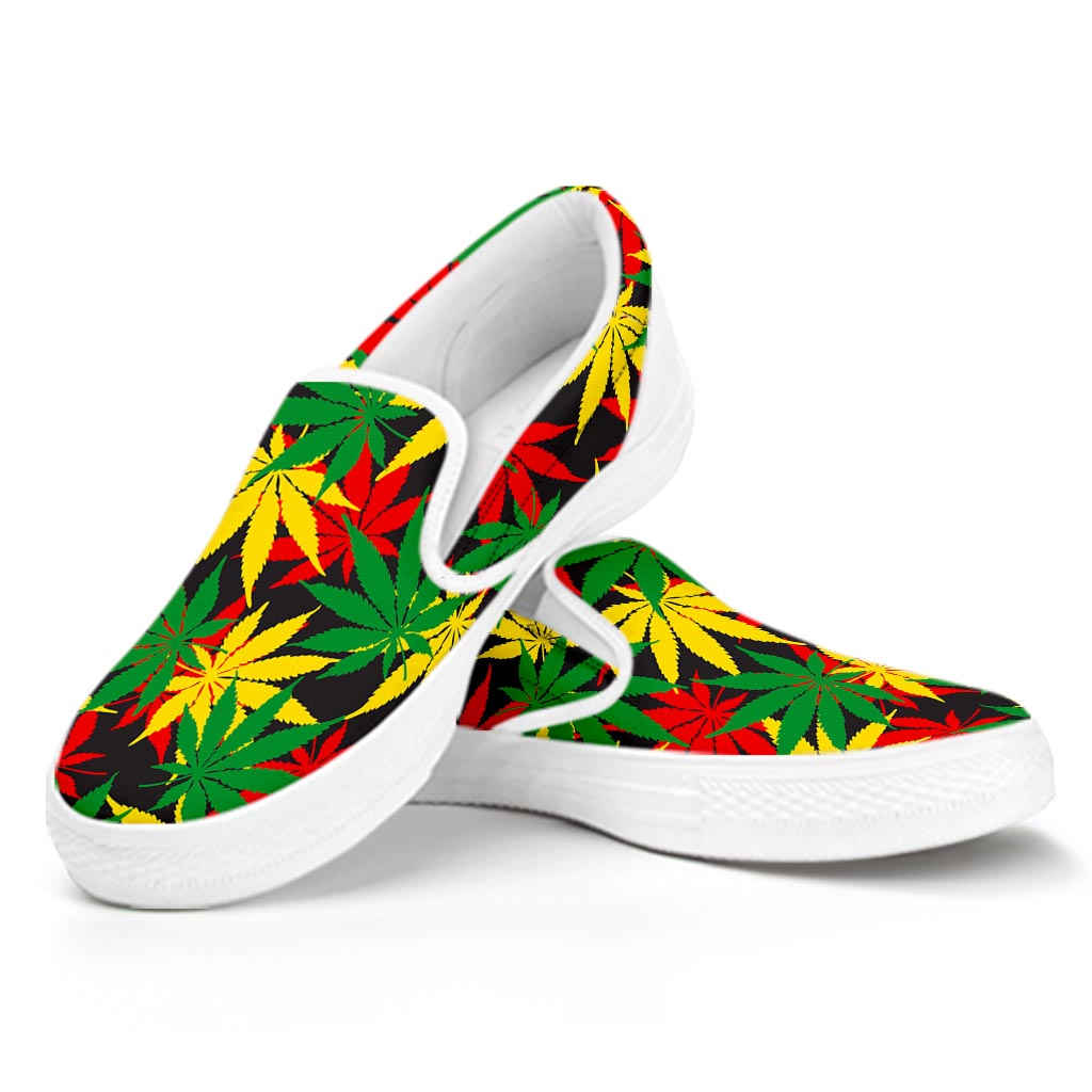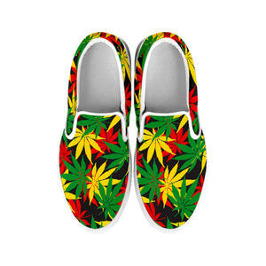 Classic Hemp Leaves Reggae Pattern Print White Slip On Sneakers