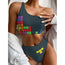Colorful Block Puzzle Video Game Print One Shoulder Bikini Set