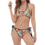 Colorful Books Pattern Print Halter Scoop Tie Side Bikini