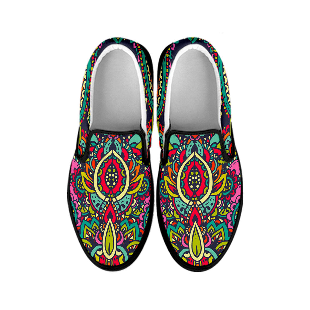 Are you looking for unique sneakers? Check our Colorful Floral Mandala Print Black Slip On Sneakers on GearFrost. Our sneakers are handcrafted to the highest quality standards and made-to-order for you!