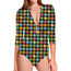 Colorful Houndstooth Print Long Sleeve Swimsuit