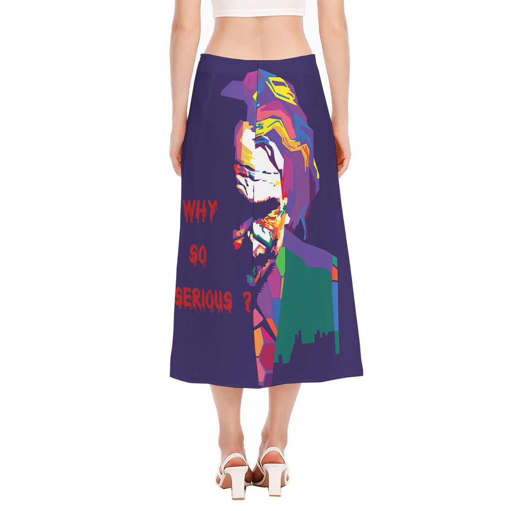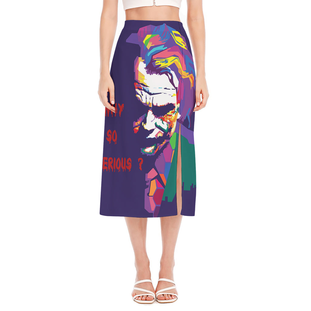 Are you looking for unique midi skirts? Check our Colorful Joker Why So Serious Print Side Slit Midi Skirt on GearFrost. Our skirts are handcrafted to the highest quality standards and made-to-order for you!