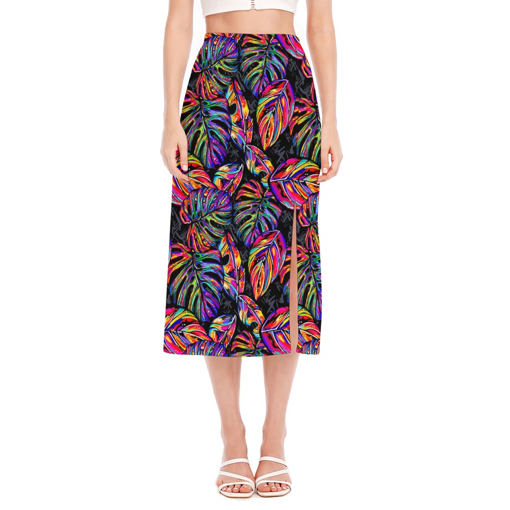 Are you looking for unique midi skirts? Check our Colorful Leaf Tropical Pattern Print Side Slit Midi Skirt on GearFrost. Our skirts are handcrafted to the highest quality standards and made-to-order for you!