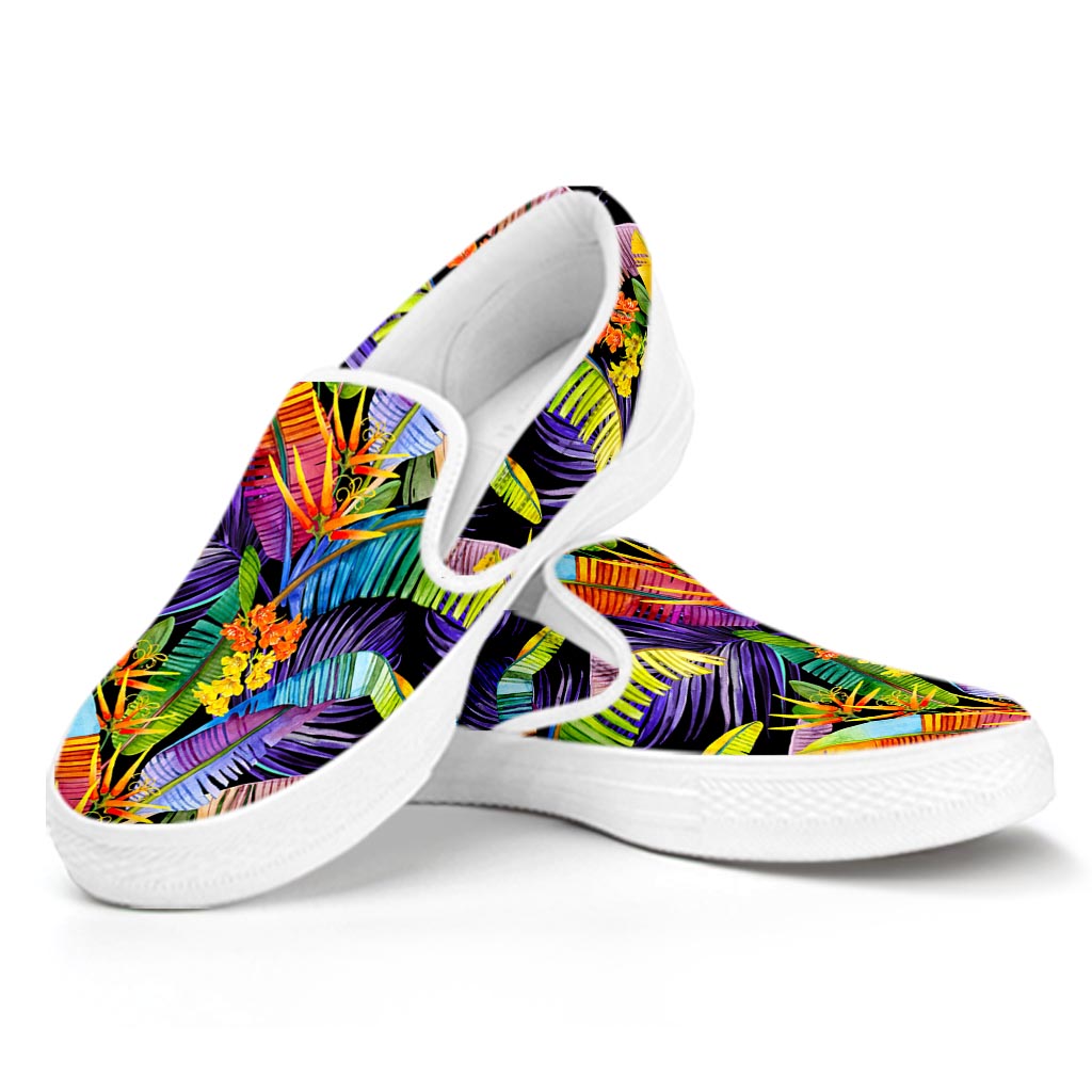 Step into effortless style and unmatched comfort with the versatile Colorful Leaves Tropical Pattern Print White Slip On Sneakers. Designed for those who value convenience and unique design, these slip-on sneakers are the perfect addition to your footwear collection. Whether you're heading out for a casual outing, running errands, or simply enjoying a laid-back day, these sneakers are built to complement your lifestyle with ease and flair.