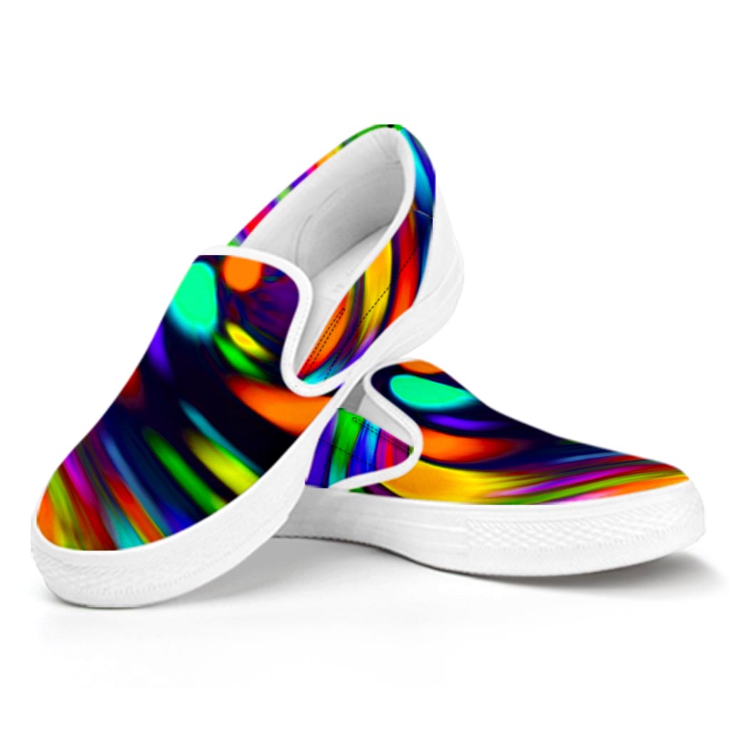 Step into effortless style and unmatched comfort with the versatile Colorful Spiral Trippy Print White Slip On Sneakers. Designed for those who value convenience and unique design, these slip-on sneakers are the perfect addition to your footwear collection. Whether you're heading out for a casual outing, running errands, or simply enjoying a laid-back day, these sneakers are built to complement your lifestyle with ease and flair.