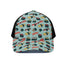 Turquoise Hawaii Tropical Pattern Print Black Mesh Trucker Hat