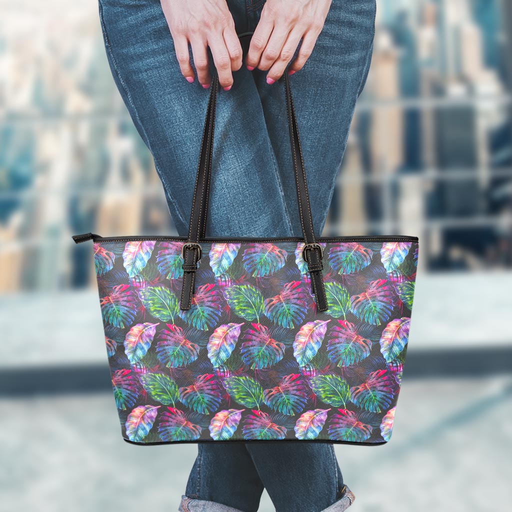 Are you looking for unique leather tote bags? Check our Colorful Tropical Leaves Pattern Print Leather Tote Bag With Zipper on GearFrost. Our tote bags are handcrafted to the highest quality standards and made-to-order for you!