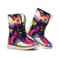 Made with water-resistant micro-suede material, these boots are not only stylish but also practical for winter conditions. The vibrant print adds a unique and personal touch, making them a standout choice for those who love bold and distinctive footwear. Paired with a premium synthetic wool lining, these boots ensure warmth and coziness, wrapping your feet in comfort even on the chilliest days.